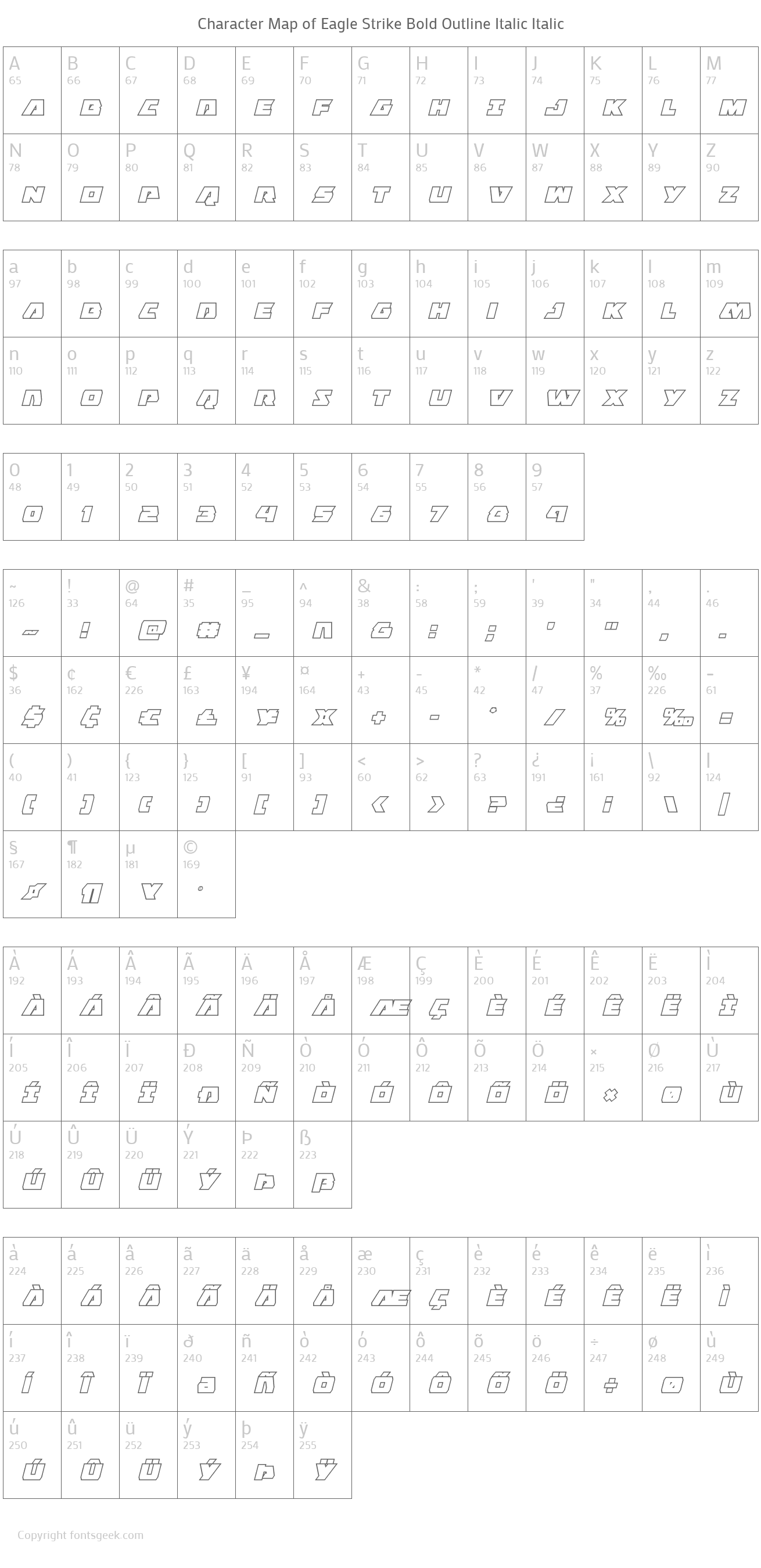 | Name | Eagle Strike Bold Outline Italic |