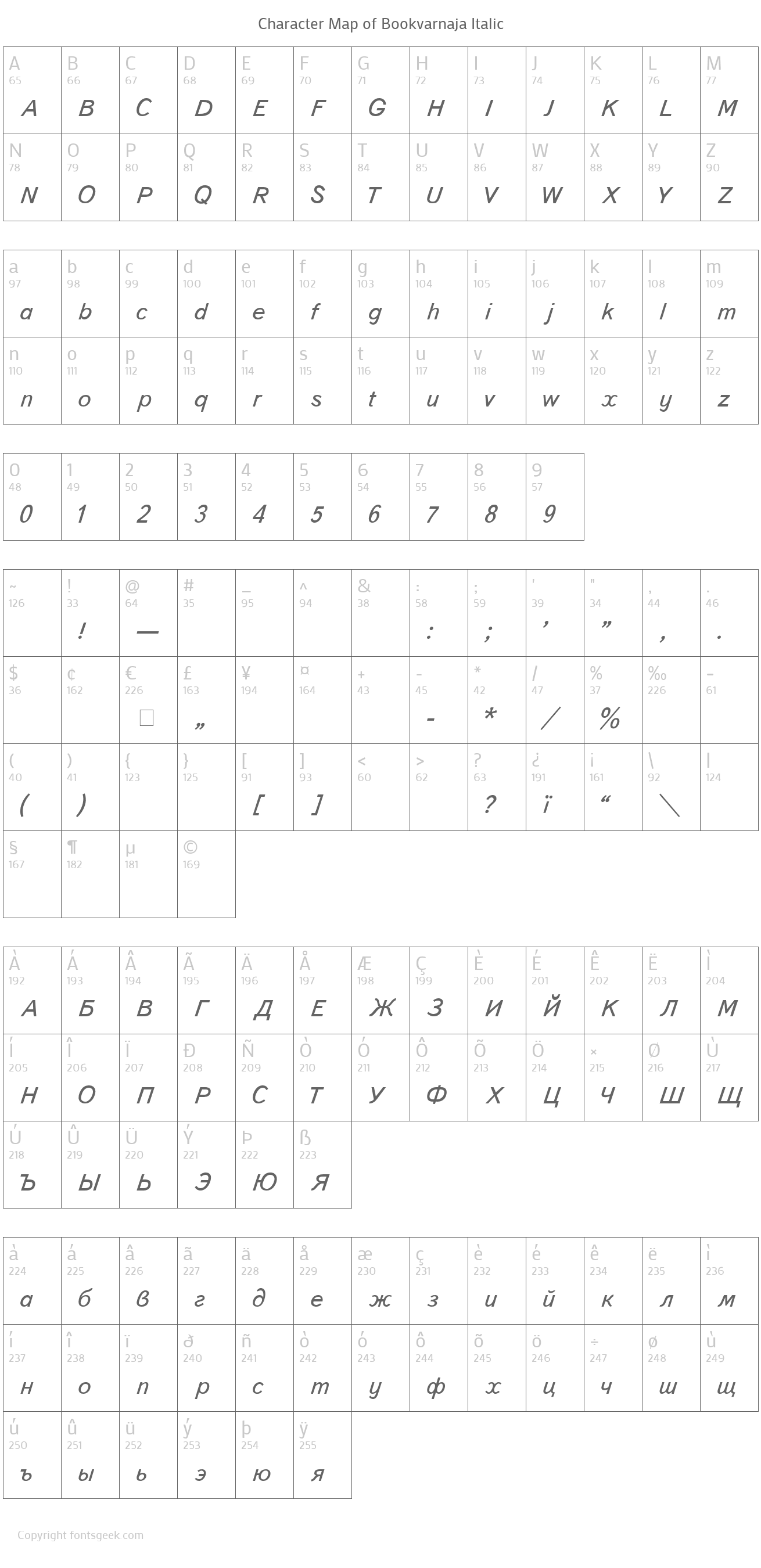 | Name | Bookvarnaja Italic |
