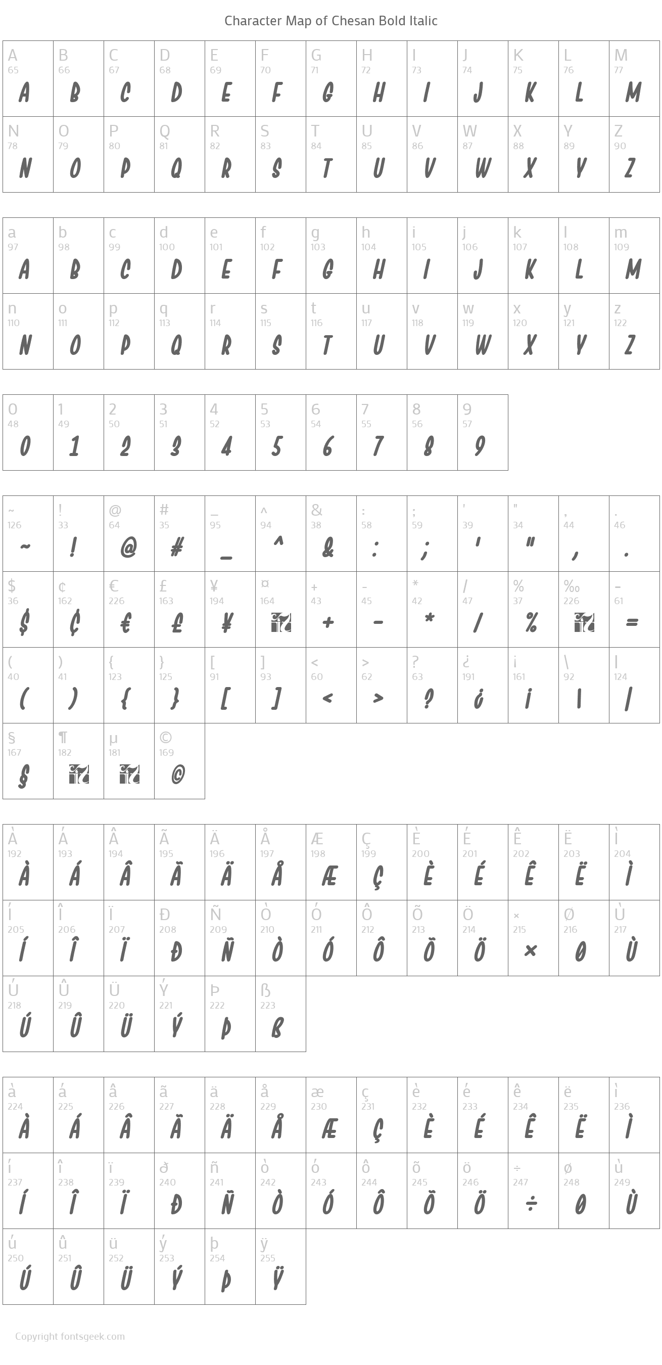 | PostScript Name | Chesan-BoldItalic |