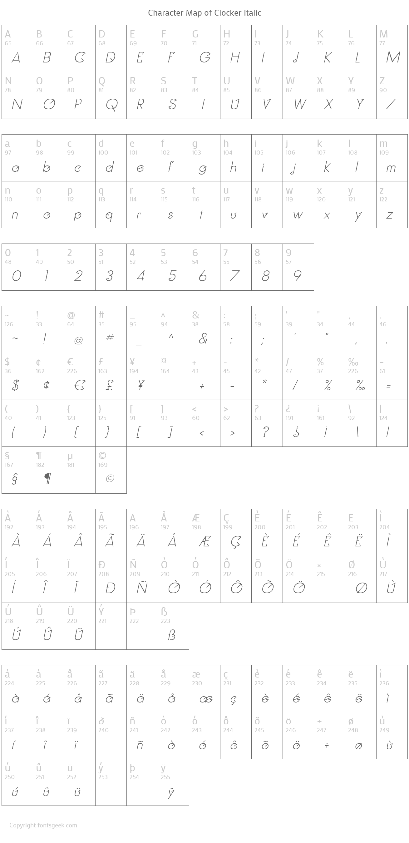 | PostScript Name | Clocker-Italic |