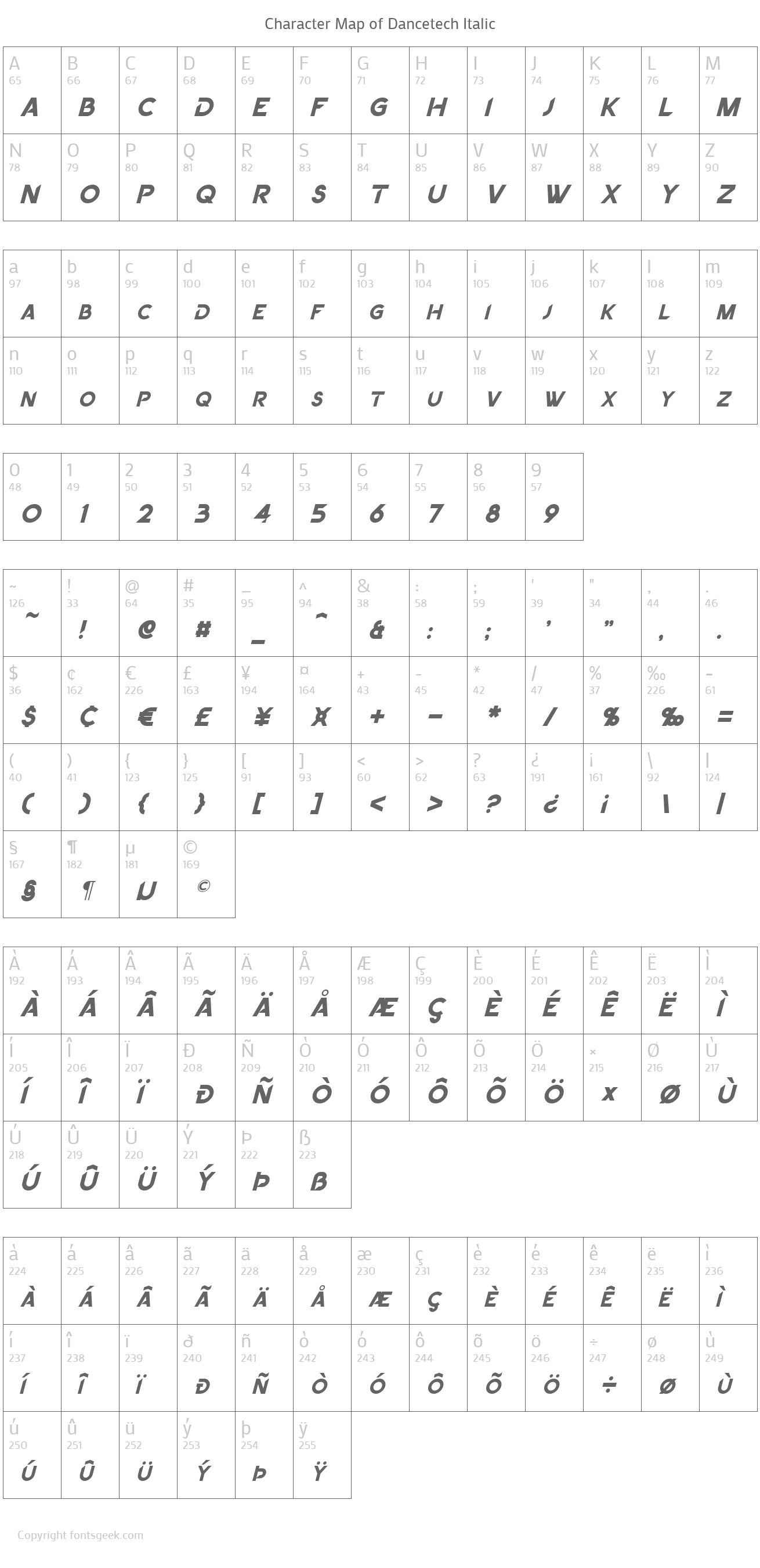 | PostScript Name | Dancetech-Italic |