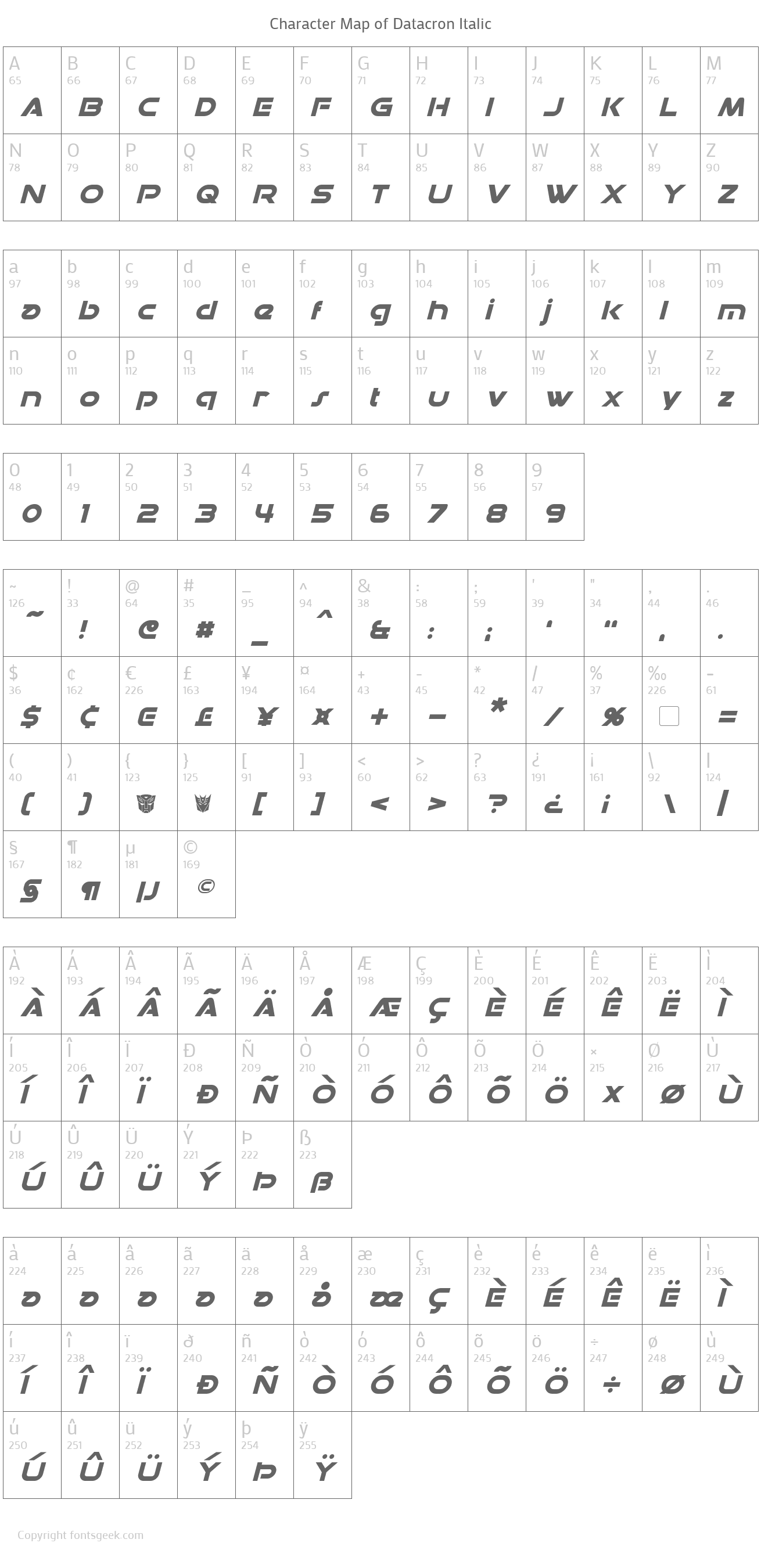 | PostScript Name | Datacron-Italic |