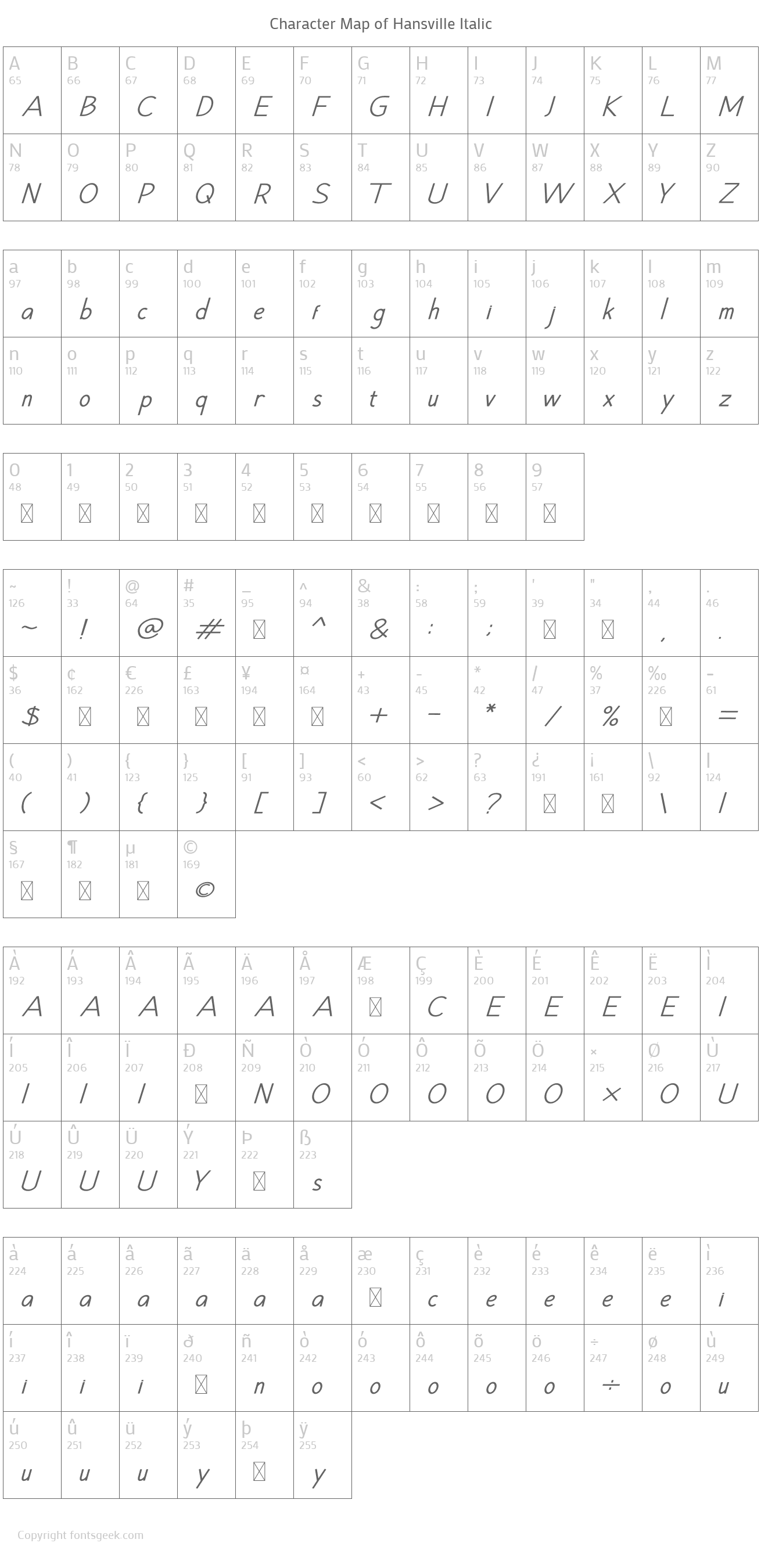 | PostScript Name | HansvilleItalic |