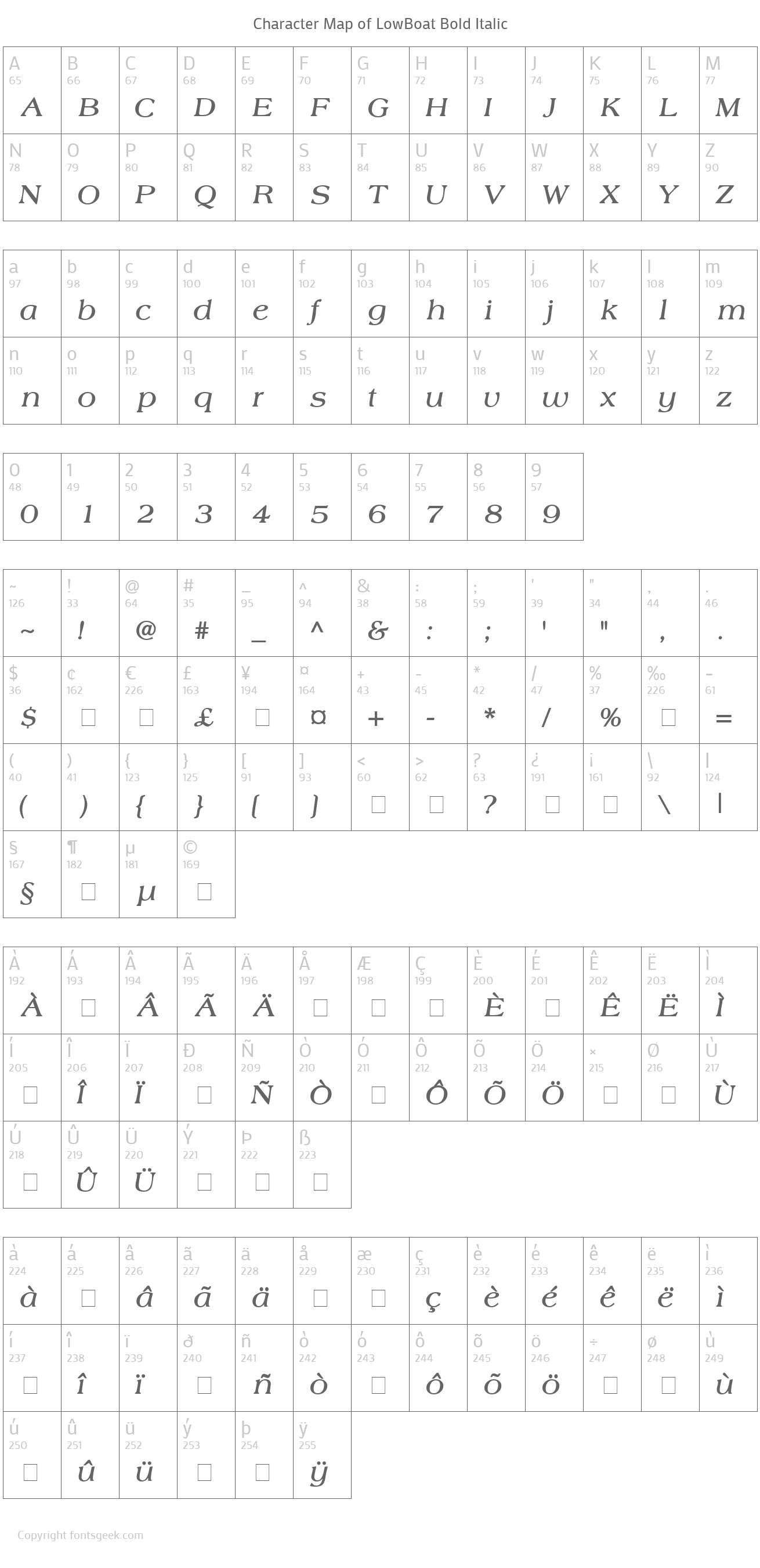 | PostScript Name | LowBoatBoldItalic |