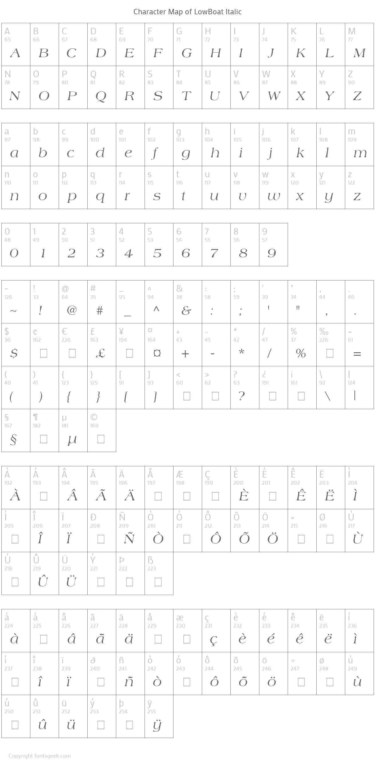 | PostScript Name | LowBoatItalic |