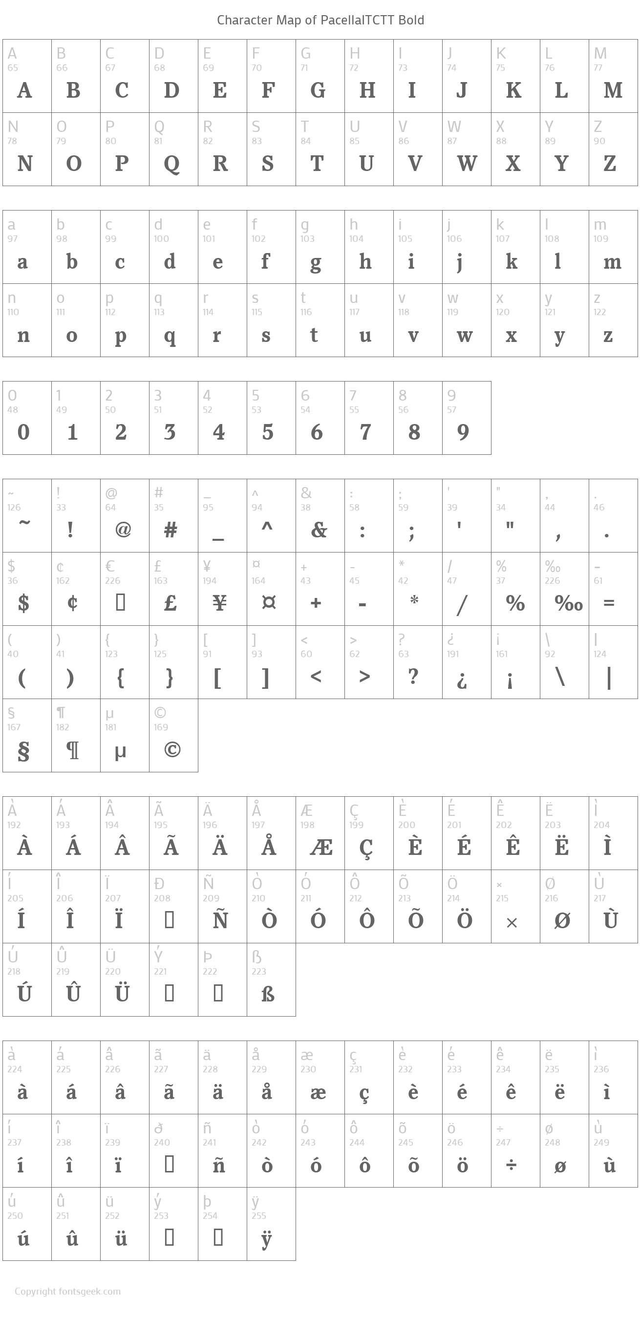 | PostScript Name | PacellaITCTTBold |
