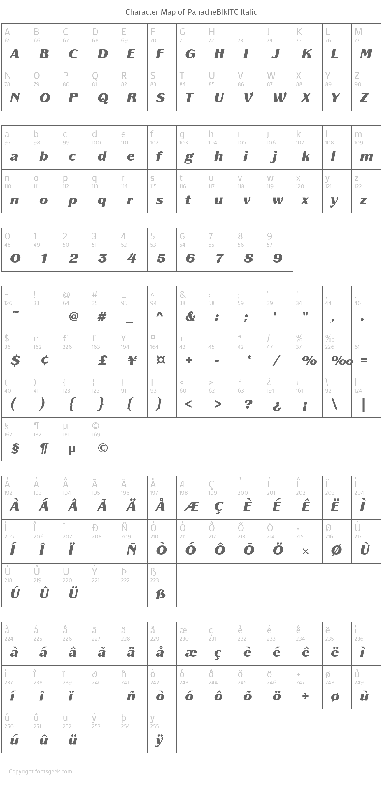 | PostScript Name | PanacheBlkITC-Italic |