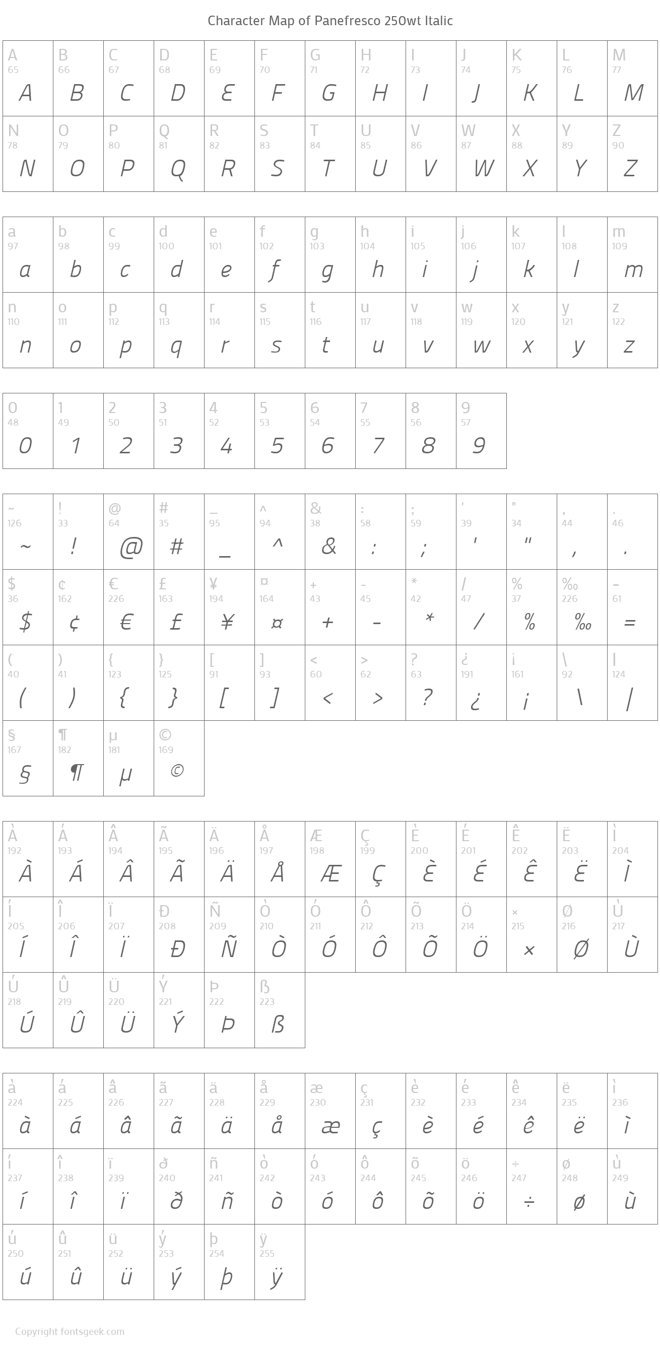 | PostScript Name | Panefresco250wt-Italic |