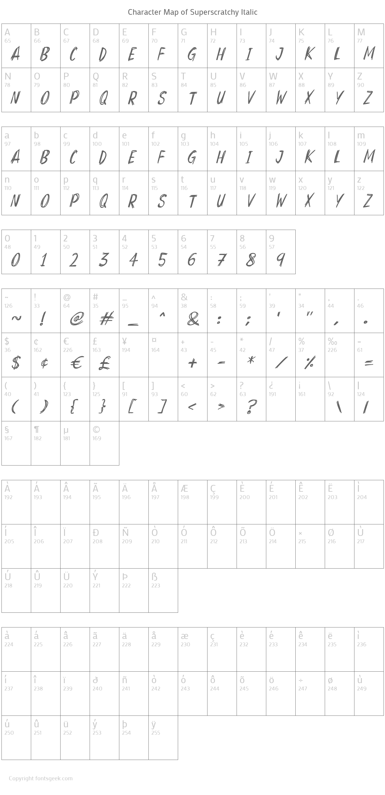 | PostScript Name | Superscratchy-Italic |