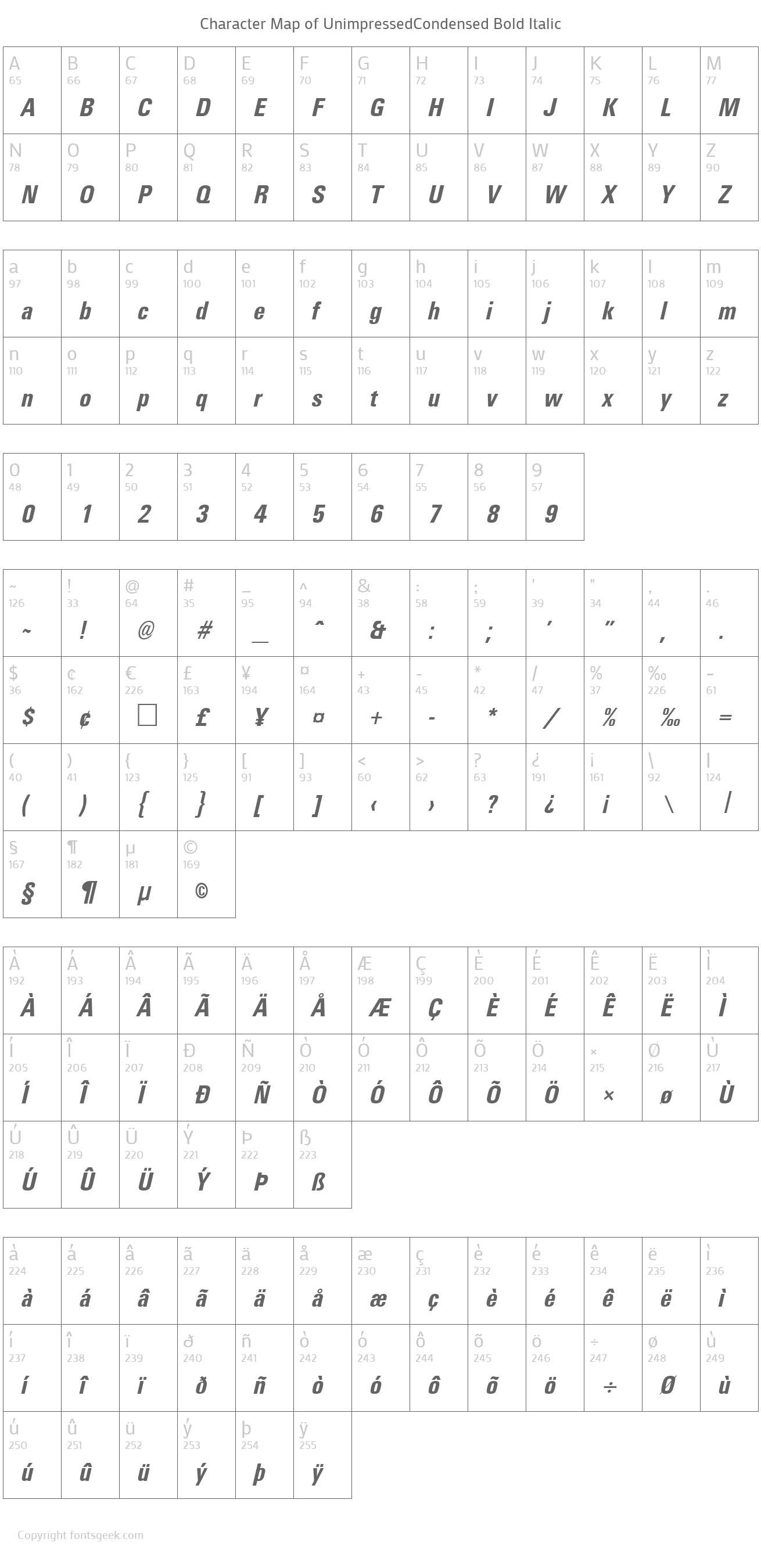 UnimpressedCondensed Bold Italic