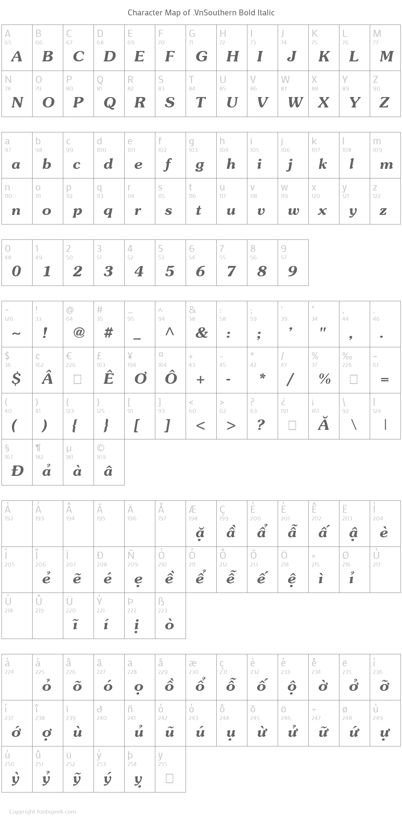 | PostScript Name | VnSouthernBoldItalic |
