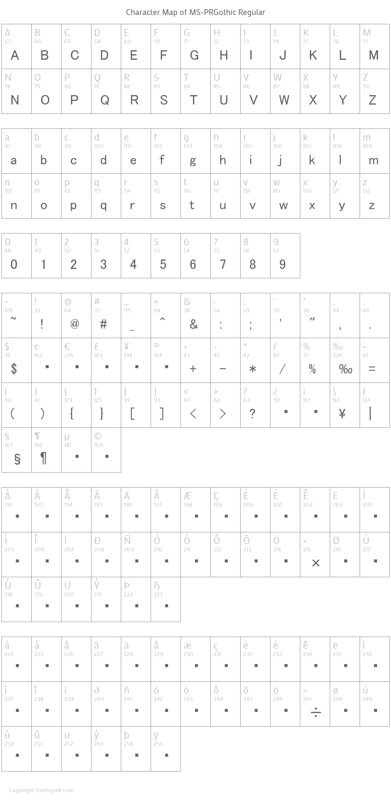 | Name | MS-PRGothic |