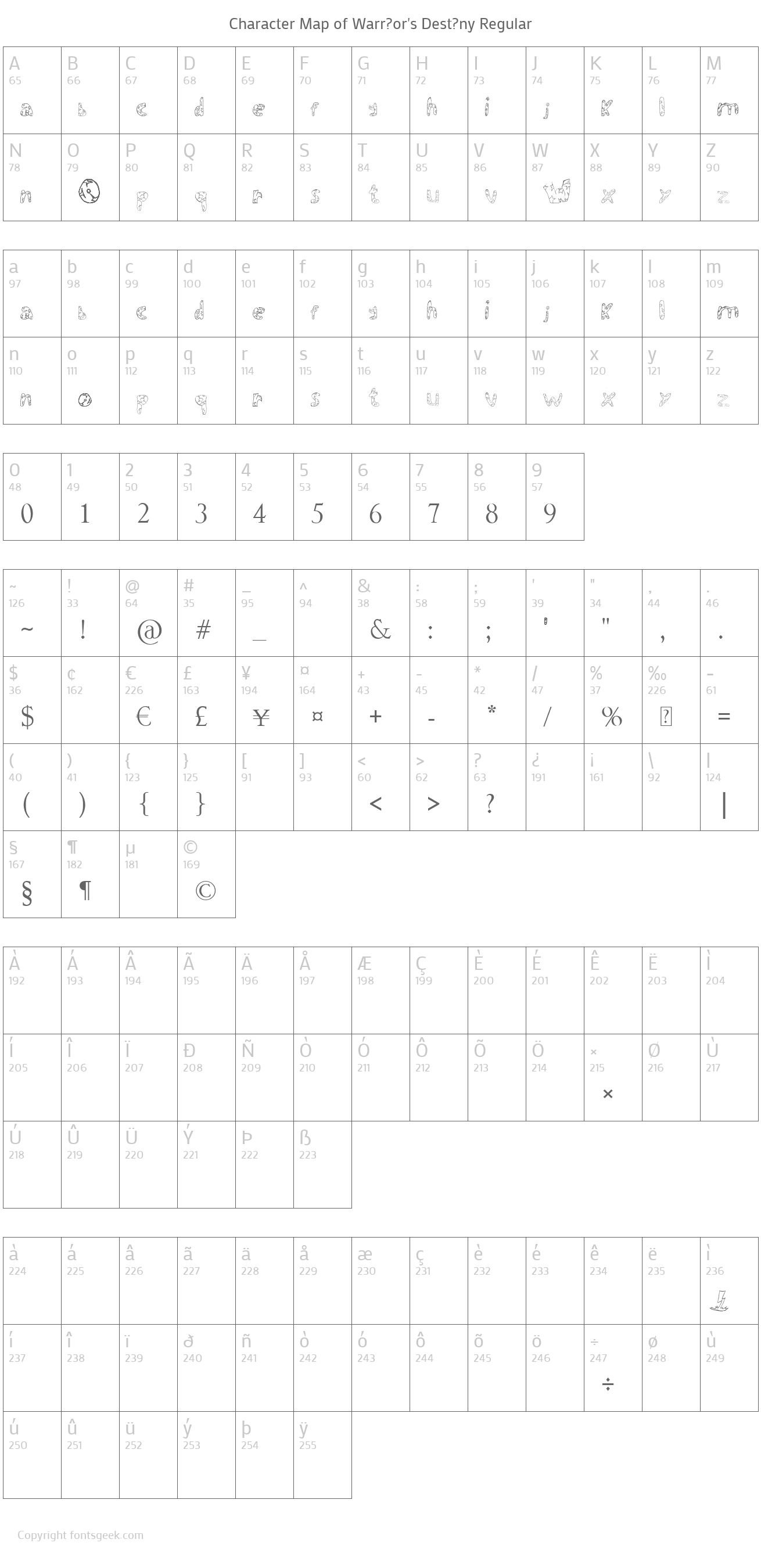 | Name | Warr?or's Dest?ny |
